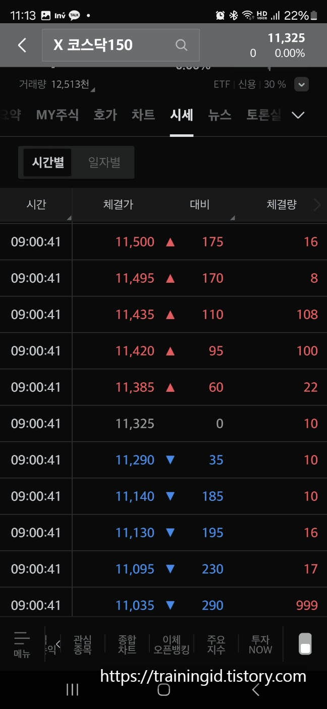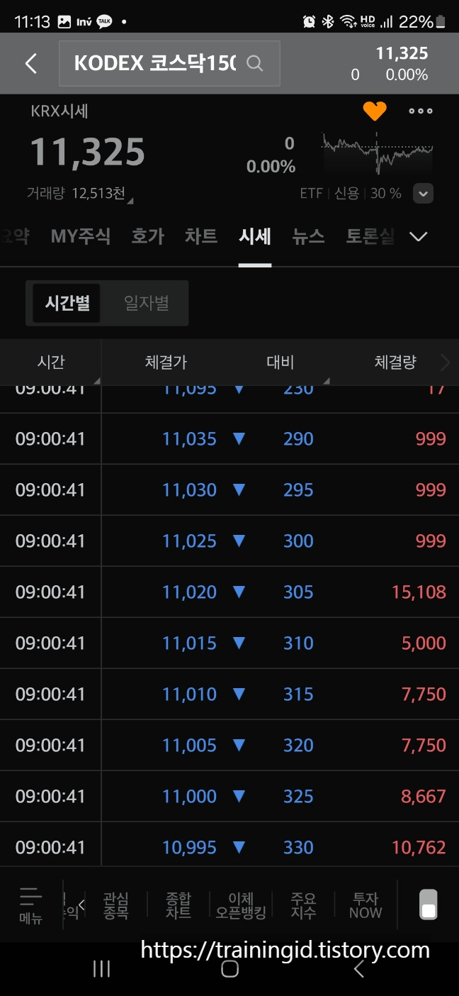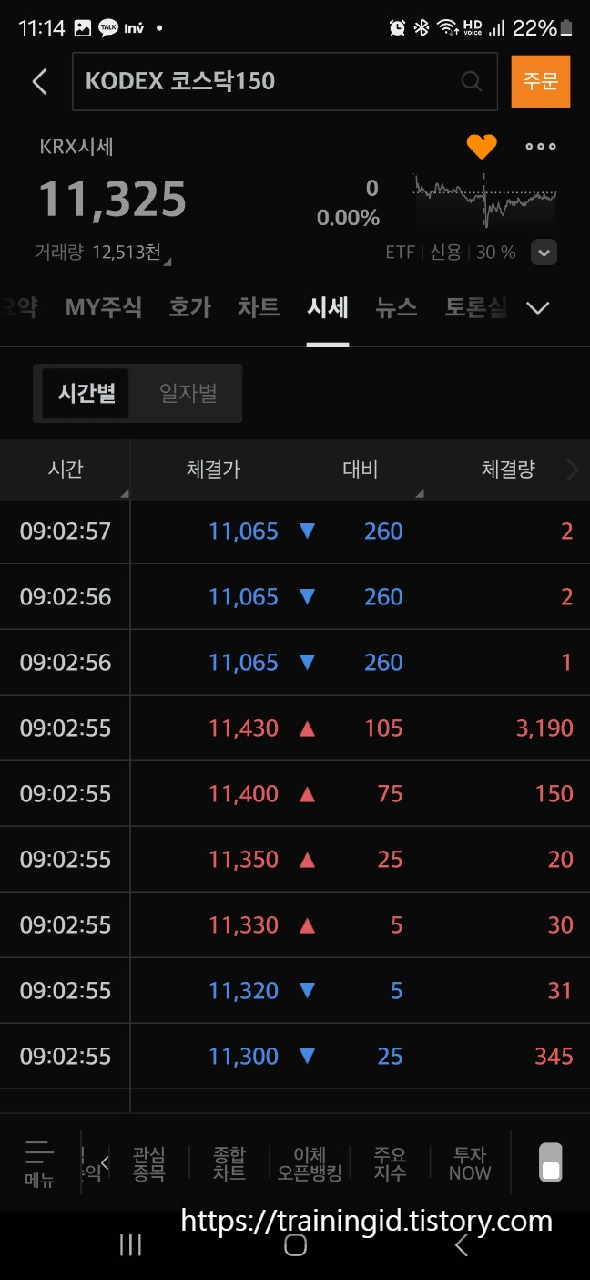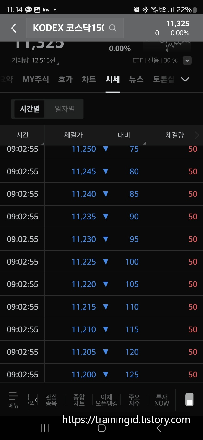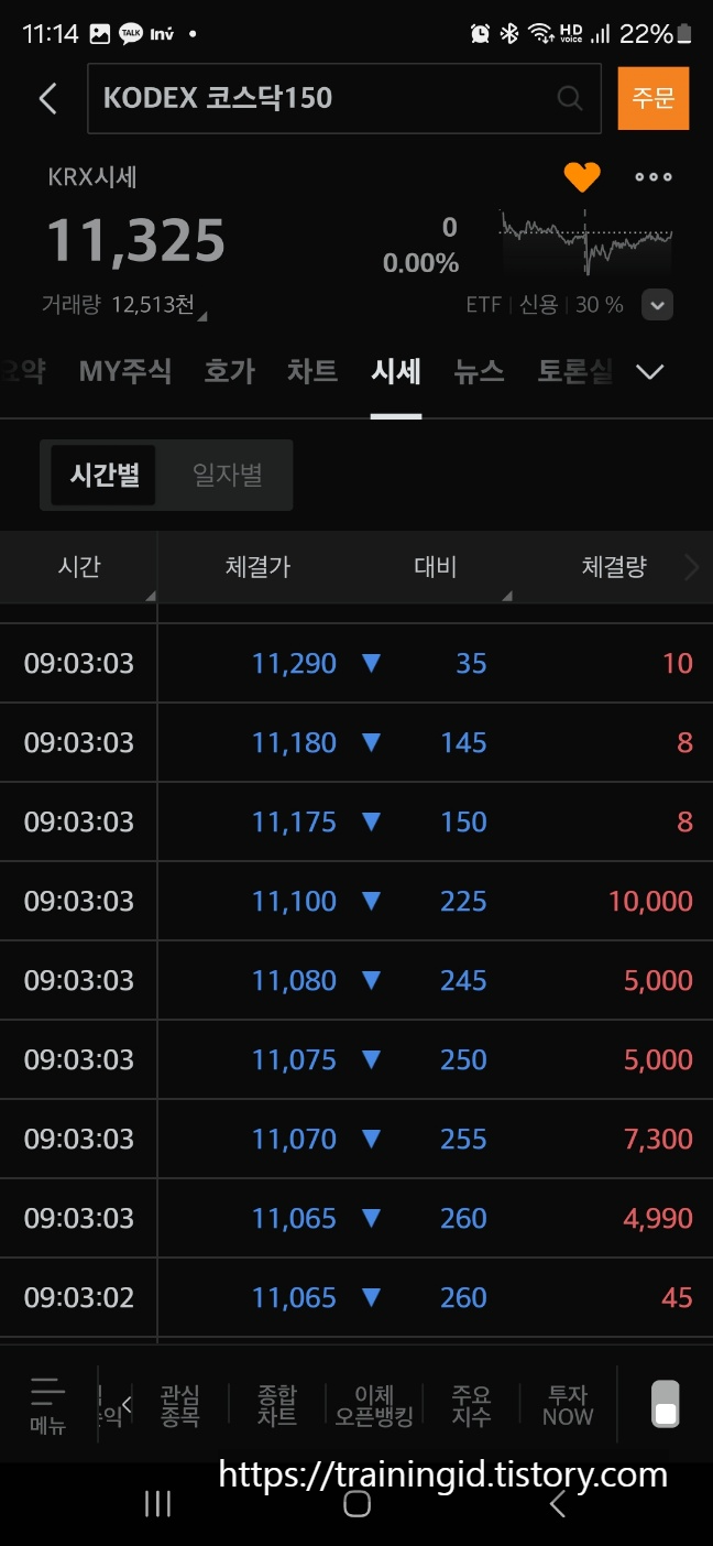 8. 11,645원 오늘의 고점이 체결되고 난 후에 잠시 동안 거래가 멈추게 됩니다. 제가 잘 몰라서 그러는데 ETF는 저점대비 5%로 VI가 걸리는가 싶기도 합니다. 5만 주가 한꺼번에 체결되며 다시 iNAV에 맞춰 정상화 됩니다.