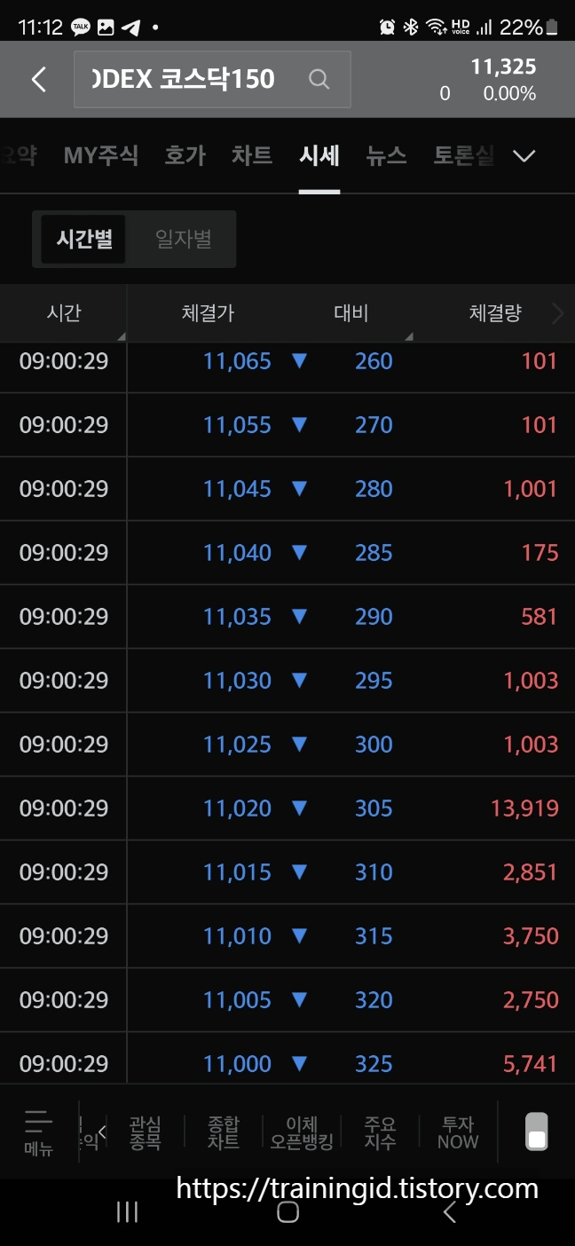 3. 이상한 점은 보통 LP들이 있기 때문에 지수 ETF가 이렇게 과도하게 가격을 올릴 수가 없습니다.11,020에 13,919주 매수가 들어오고 나서 갑자기 LP가 사라진 것 같습니다. 이어지는 29초 거래를 보면 101주 씩 거래가 이뤄지며 호가가 10원 단위로 올라갑니다. 굉장히 이상합니다.그리고 11,195에서 4만주가 매수됩니다. 이는 아무래도 누군가 4만주를 한꺼면에 매수 날린 것이 아닐까 의심해 봅니다. 아무튼 의심 스러운 것은 LP와의 가격 체결이 왜 이상하냐는 점입니다.