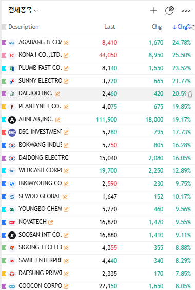 지금 현재는 이렇다 할 먹거리가 없기에 많은 돈이 정치테마주에 쏠려 있는 상황입니다. 정치테마주에 메모 남겨둔 것인데, 전부다 정치테마주네요.