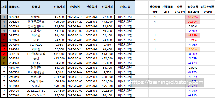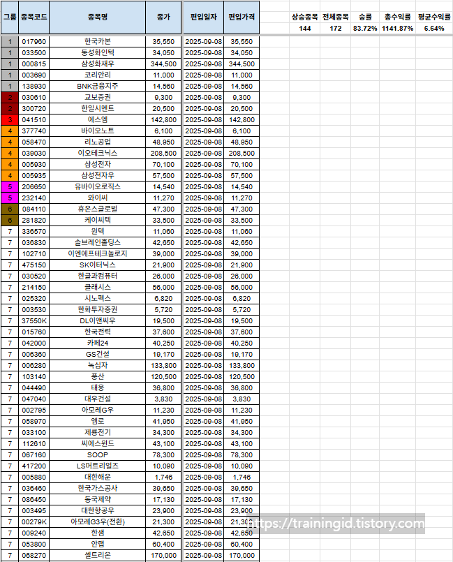 그리고, 그룹에 대한 질의 사항이 있어서 간단하게 설명 드리자면, 1그룹~7그룹까지 있으며, 1그룹으로 갈수록 강한 추세를 의미합니다. 7그룹은 이제 막 반등을 시작하는 그룹으로 해석하시면 됩니다.