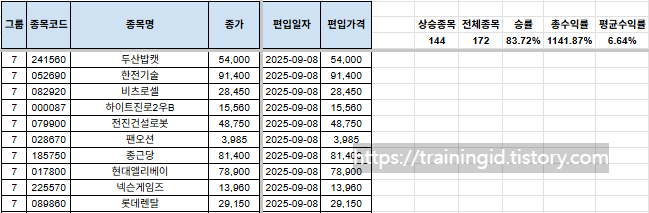 종목이 많이 걸러지는 관계로, 남아있는 포트폴리오, 신규 편입 종목, 당일 편출 종목만을 올려두겠습니다. 전일 자료는 전일 포스팅을 참고하여 주시기 바랍니다.