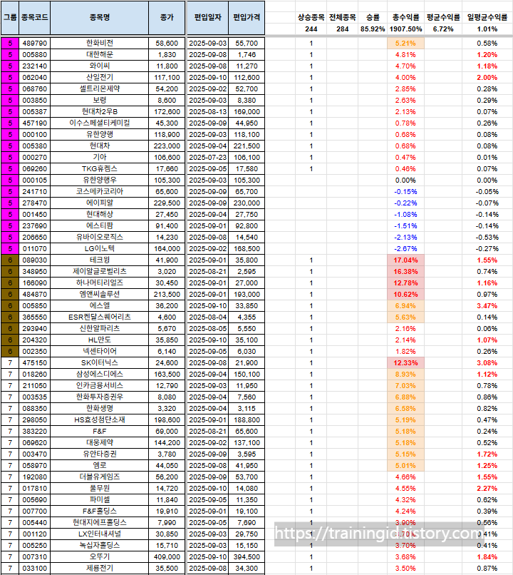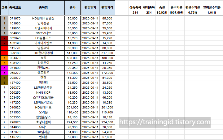 그리고, 그룹에 대한 질의 사항이 있어서 간단하게 설명 드리자면, 1그룹~7그룹까지 있으며, 1그룹으로 갈수록 강한 추세를 의미합니다. 7그룹은 이제 막 반등을 시작하는 그룹으로 해석하시면 됩니다.