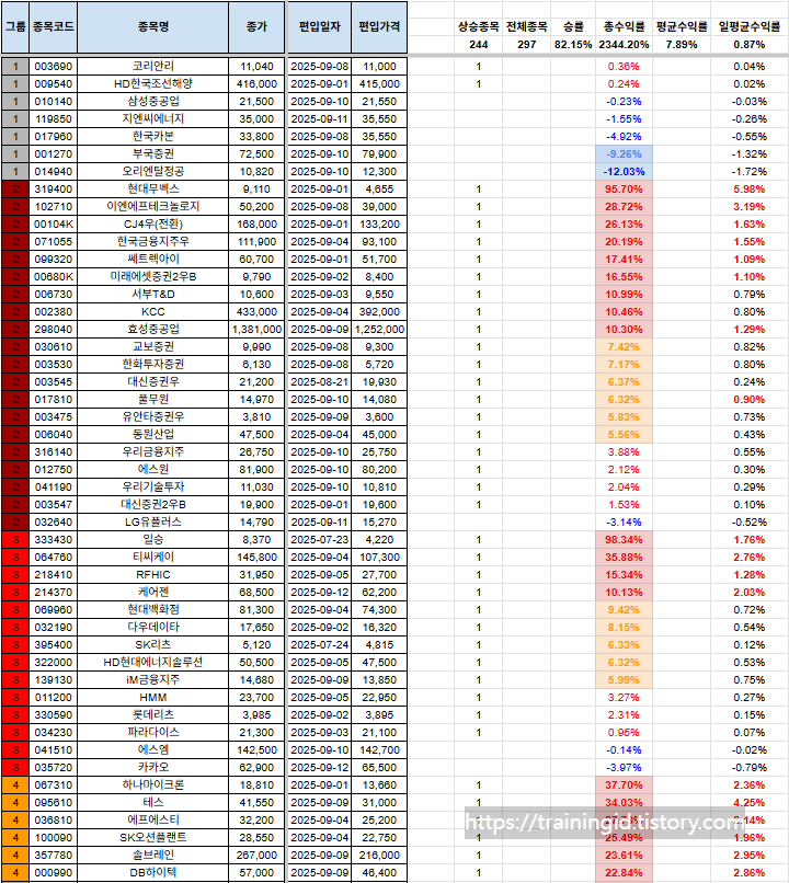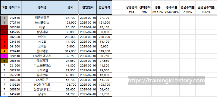 그리고, 그룹에 대한 질의 사항이 있어서 간단하게 설명 드리자면, 1그룹~7그룹까지 있으며, 1그룹으로 갈수록 강한 추세를 의미합니다. 7그룹은 이제 막 반등을 시작하는 그룹으로 해석하시면 됩니다.