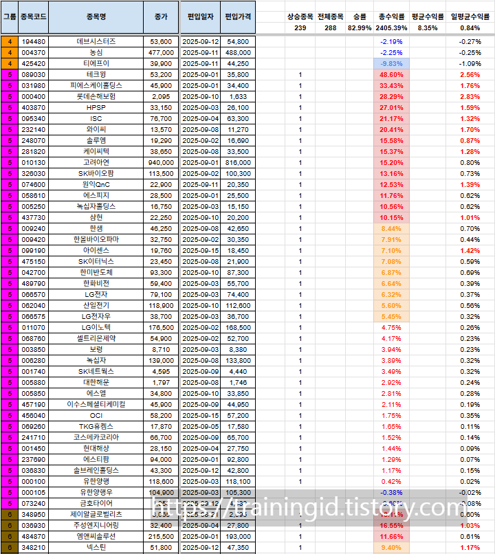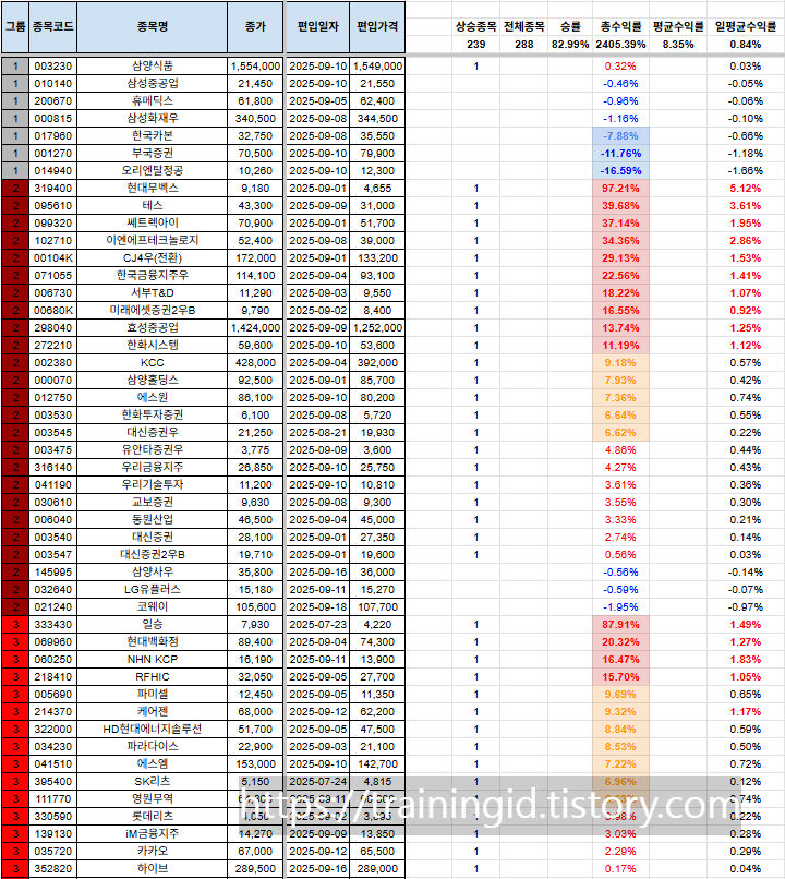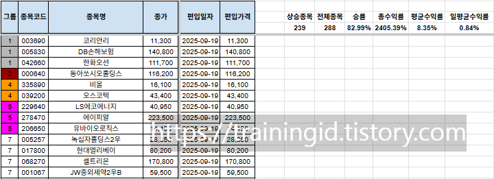 그리고, 그룹에 대한 질의 사항이 있어서 간단하게 설명 드리자면, 1그룹~7그룹까지 있으며, 1그룹으로 갈수록 강한 추세를 의미합니다. 7그룹은 이제 막 반등을 시작하는 그룹으로 해석하시면 됩니다.