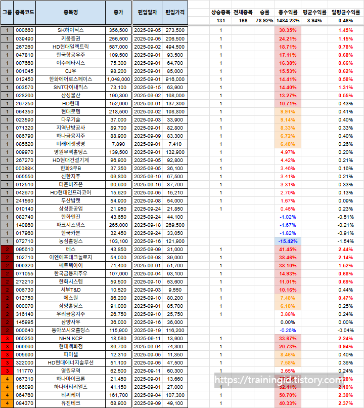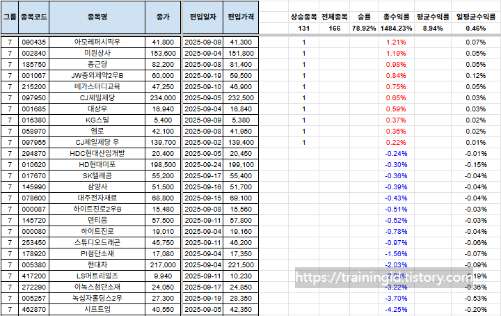 종목이 많이 걸러지는 관계로, 남아있는 포트폴리오, 신규 편입 종목, 당일 편출 종목만을 올려두겠습니다. 전일 자료는 전일 포스팅을 참고하여 주시기 바랍니다.