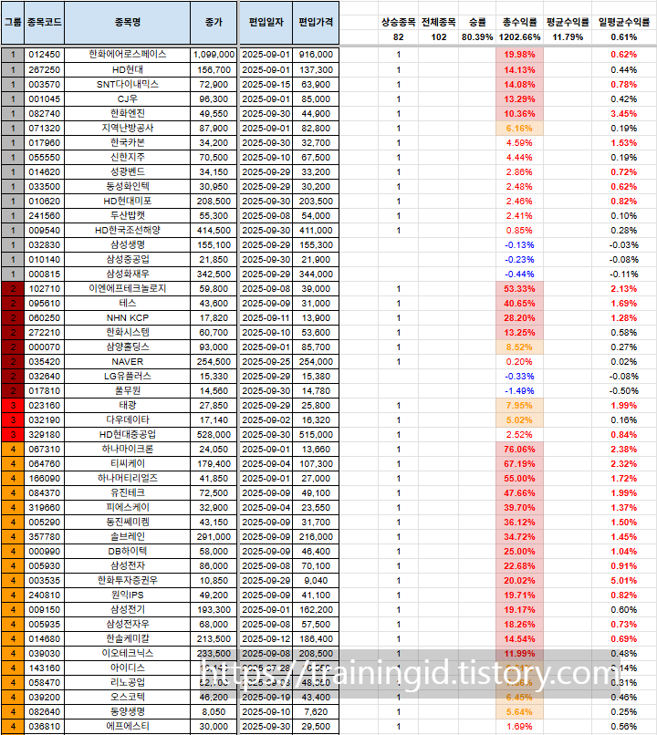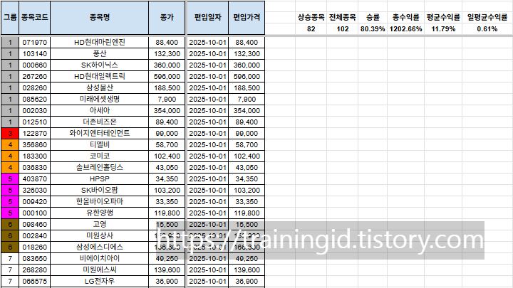 그리고, 그룹에 대한 질의 사항이 있어서 간단하게 설명 드리자면, 1그룹~7그룹까지 있으며, 1그룹으로 갈수록 강한 추세를 의미합니다. 7그룹은 이제 막 반등을 시작하는 그룹으로 해석하시면 됩니다.