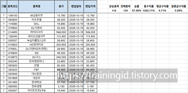 종목이 많이 걸러지는 관계로, 남아있는 포트폴리오, 신규 편입 종목, 당일 편출 종목만을 올려두겠습니다. 전일 자료는 전일 포스팅을 참고하여 주시기 바랍니다.