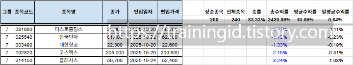 그리고, 그룹에 대한 질의 사항이 있어서 간단하게 설명 드리자면, 1그룹~7그룹까지 있으며, 1그룹으로 갈수록 강한 추세를 의미합니다. 7그룹은 이제 막 반등을 시작하는 그룹으로 해석하시면 됩니다.