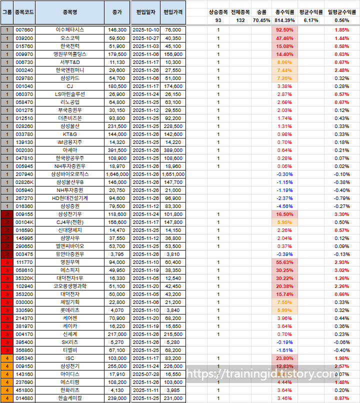 그리고, 그룹에 대한 질의 사항이 있어서 간단하게 설명 드리자면, 1그룹~7그룹까지 있으며, 1그룹으로 갈수록 강한 추세를 의미합니다. 7그룹은 이제 막 반등을 시작하는 그룹으로 해석하시면 됩니다.