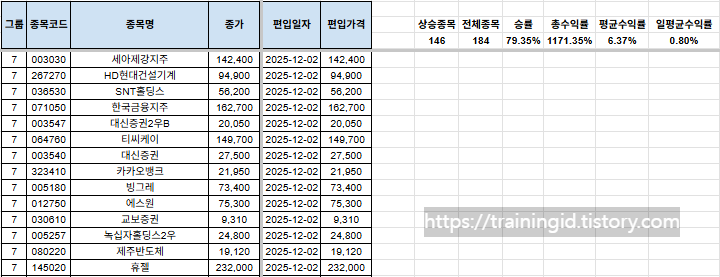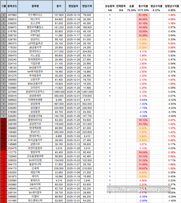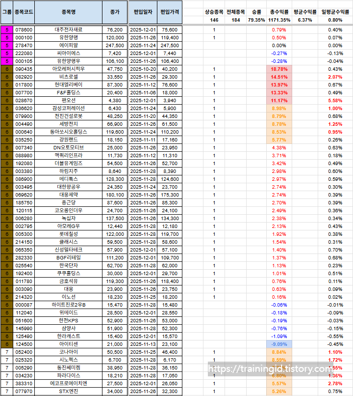 그리고, 그룹에 대한 질의 사항이 있어서 간단하게 설명 드리자면, 1그룹~7그룹까지 있으며, 1그룹으로 갈수록 강한 추세를 의미합니다. 7그룹은 이제 막 반등을 시작하는 그룹으로 해석하시면 됩니다.